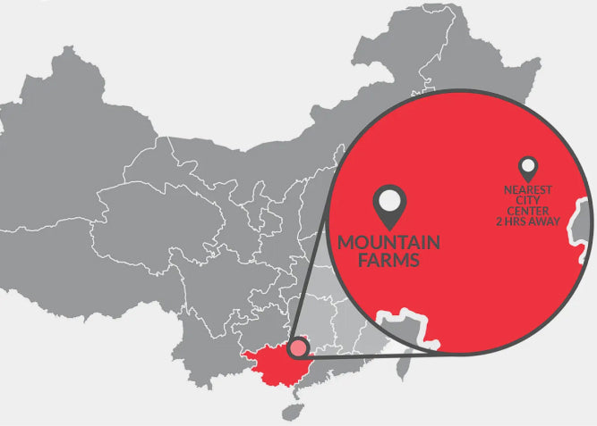 We ensure the monk fruit for our products is grown on pristine farms in the remote mountains of Guilin, China, hours away from the city pollution. The elevation of the fields and steepness of the slopes allows for optimal growth, protection from flood damage, and access to unpolluted water. The fields are generally a 20-45 minute hike from the farm villages.