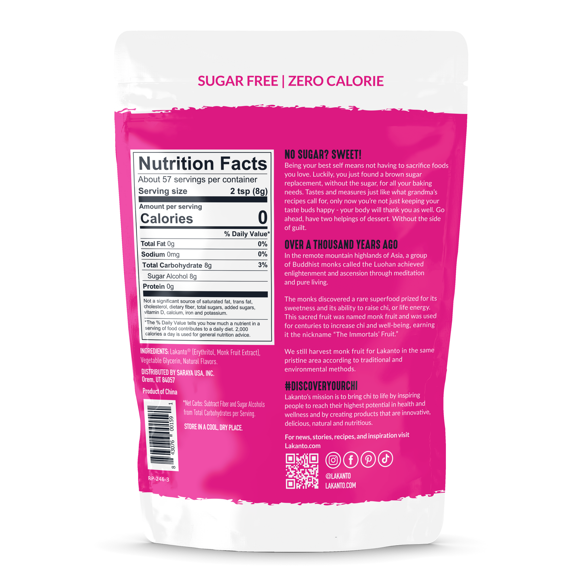 Lakanto Brown Monk Fruit Sweetener is the only zero calorie, low glycemic sweetener that is just like brown sugar. It is made from Monk Fruit which was used for centuries in eastern traditional herbalism to increase chi and well-being, earning it the nickname The Immortals Fruit. We still grow and harvest Monk Fruit for LAKANTO in the same pristine area and according to traditional and environmental methods.