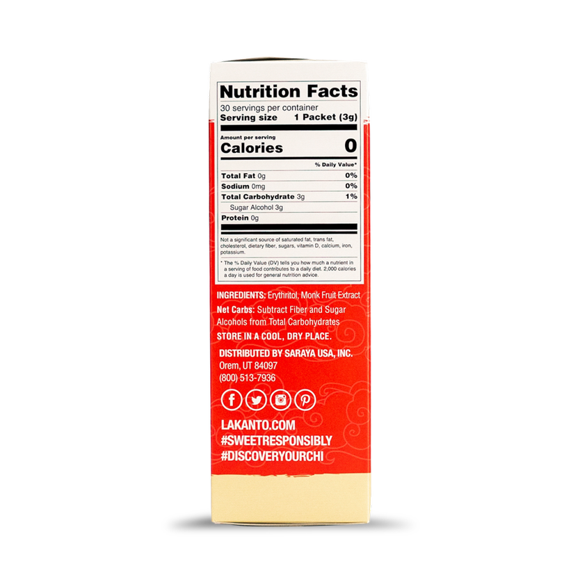 All-natural, zero-calorie, low glycemic sweetener. Lakanto Sweeteners are sugar-free and have none of the bitter chemical after taste like Stevia and Xylitol.