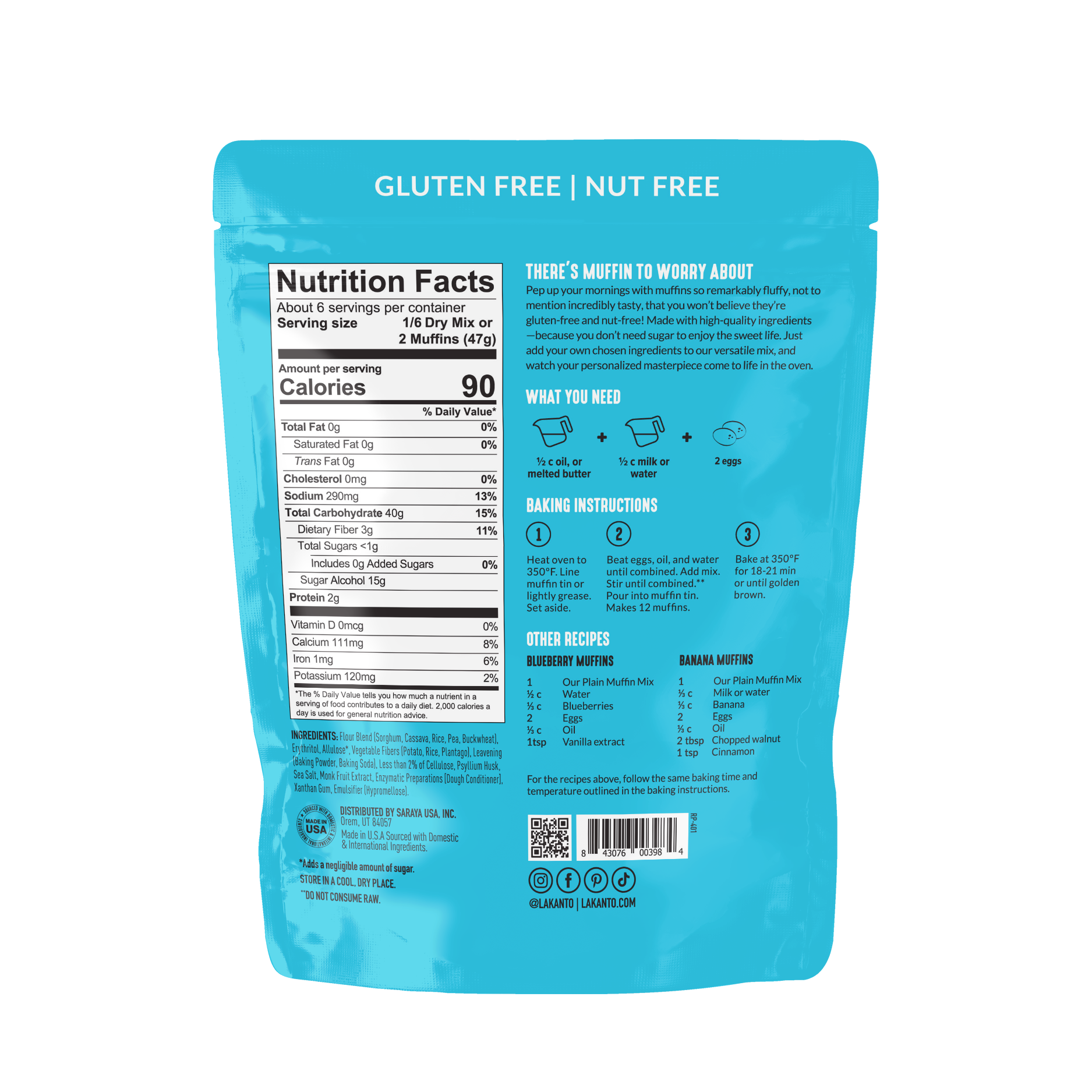 Start your day off right with our Gluten Free Plain Muffin Mix. Made with the finest ingredients and sweetened with a blend of Monk Fruit, Allulose, and Erythritol, each serving has less than 1g of sugar. Enjoy the moist, cake-y crumble texture and add your own personal touch like fresh blueberries, chocolate chips, or nuts. With just water, eggs, and oil, you can have perfect homemade muffins in just 18-21 minutes.