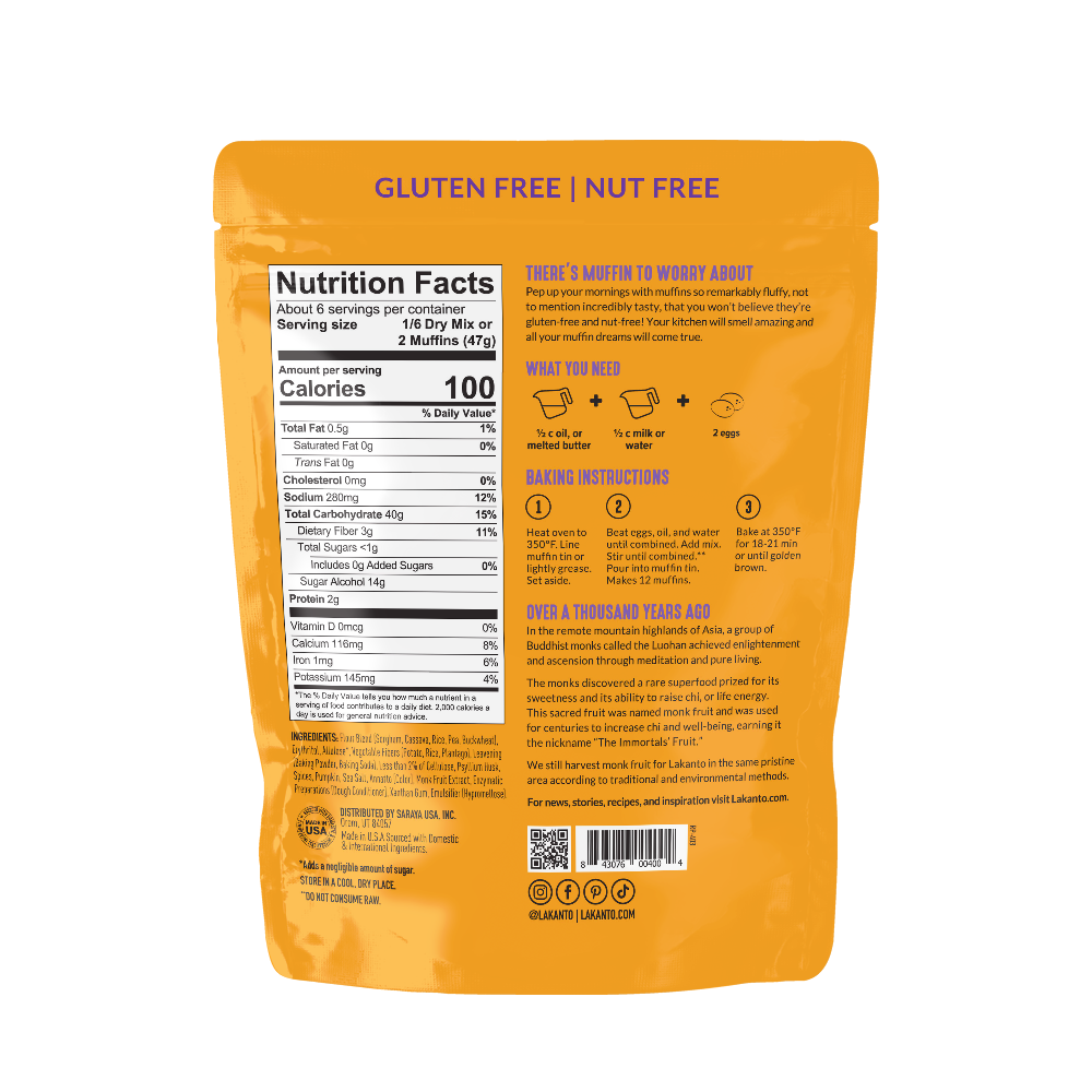 Enjoy the delightful taste of fall with Lakanto’s new Pumpkin Spice Muffin Mix, a perfect blend of warm spices and natural sweeteners that bring a cozy, comforting flavor to every bite. Made with only the best ingredients and sweetened with a blend of Monk Fruit, Allulose, and Erythritol, each delicious muffin has less than 1g of sugar. With a moist cake-y crumble texture, this is the perfect muffin mix for the Pumpkin Spice season and all year round.